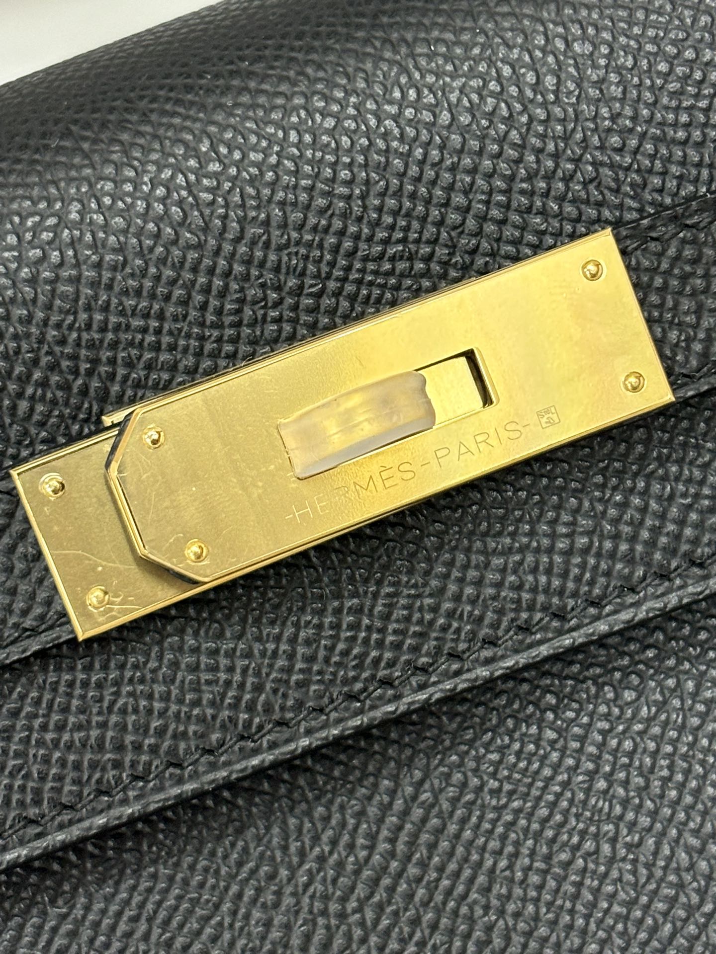 This is a replica ###Hermès Kelly Sellier 28 Noir Epsom Leather Gold Hardware. ###