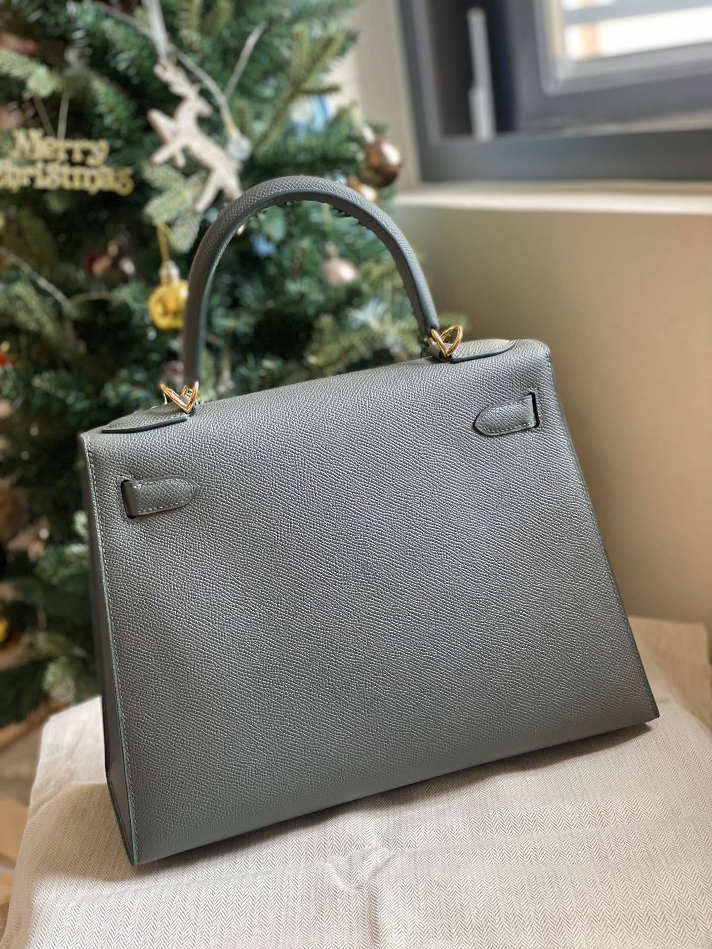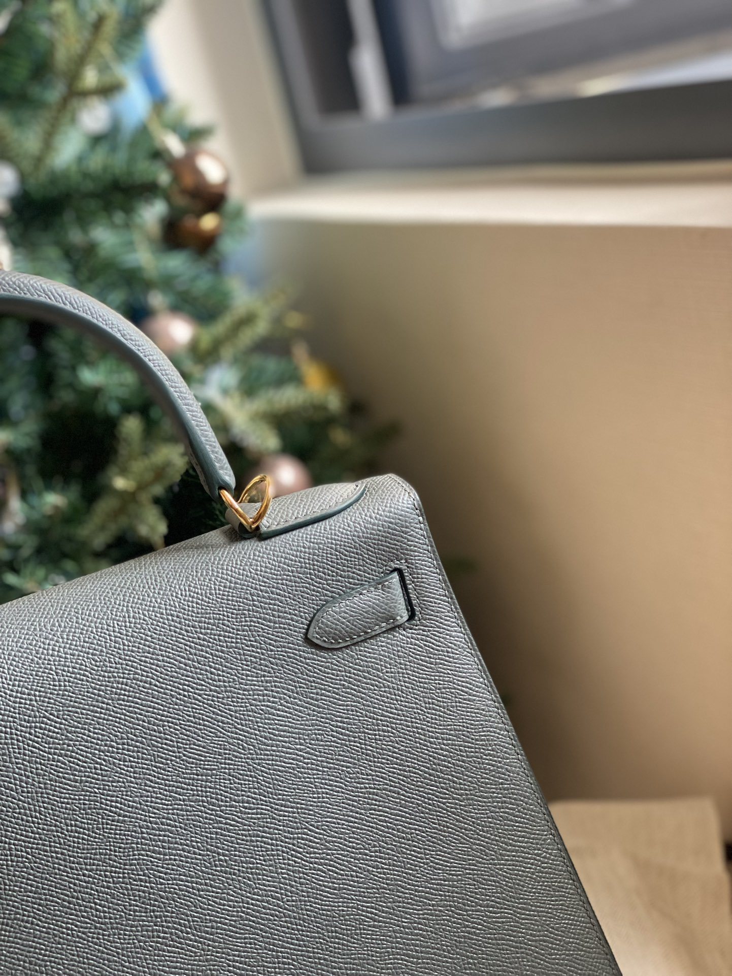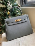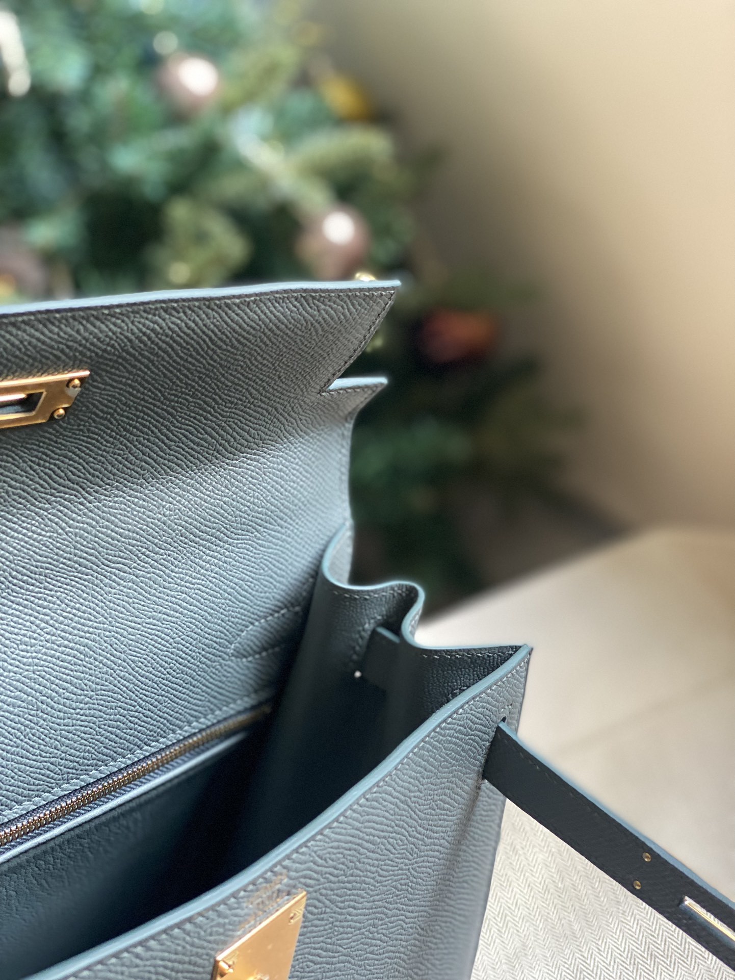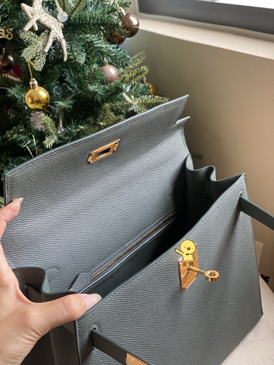 This is a replica ###Hermès Kelly Sellier 28 Vert Amande Epsom Leather Gold Hardware. ###