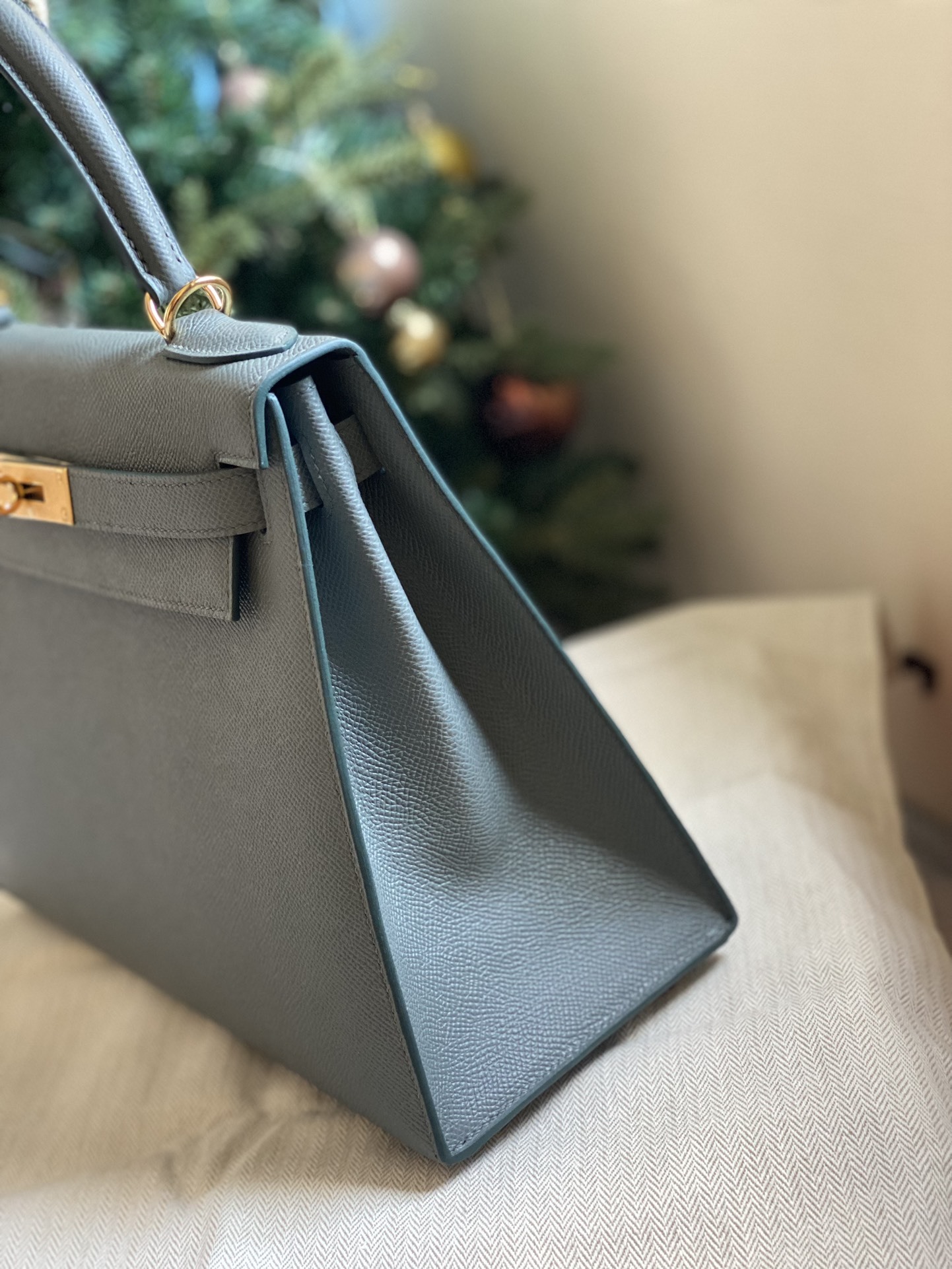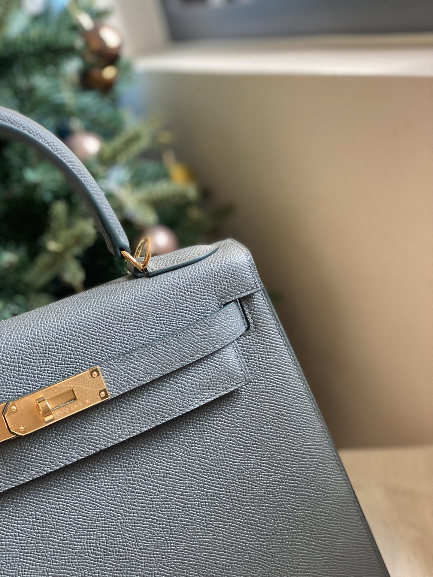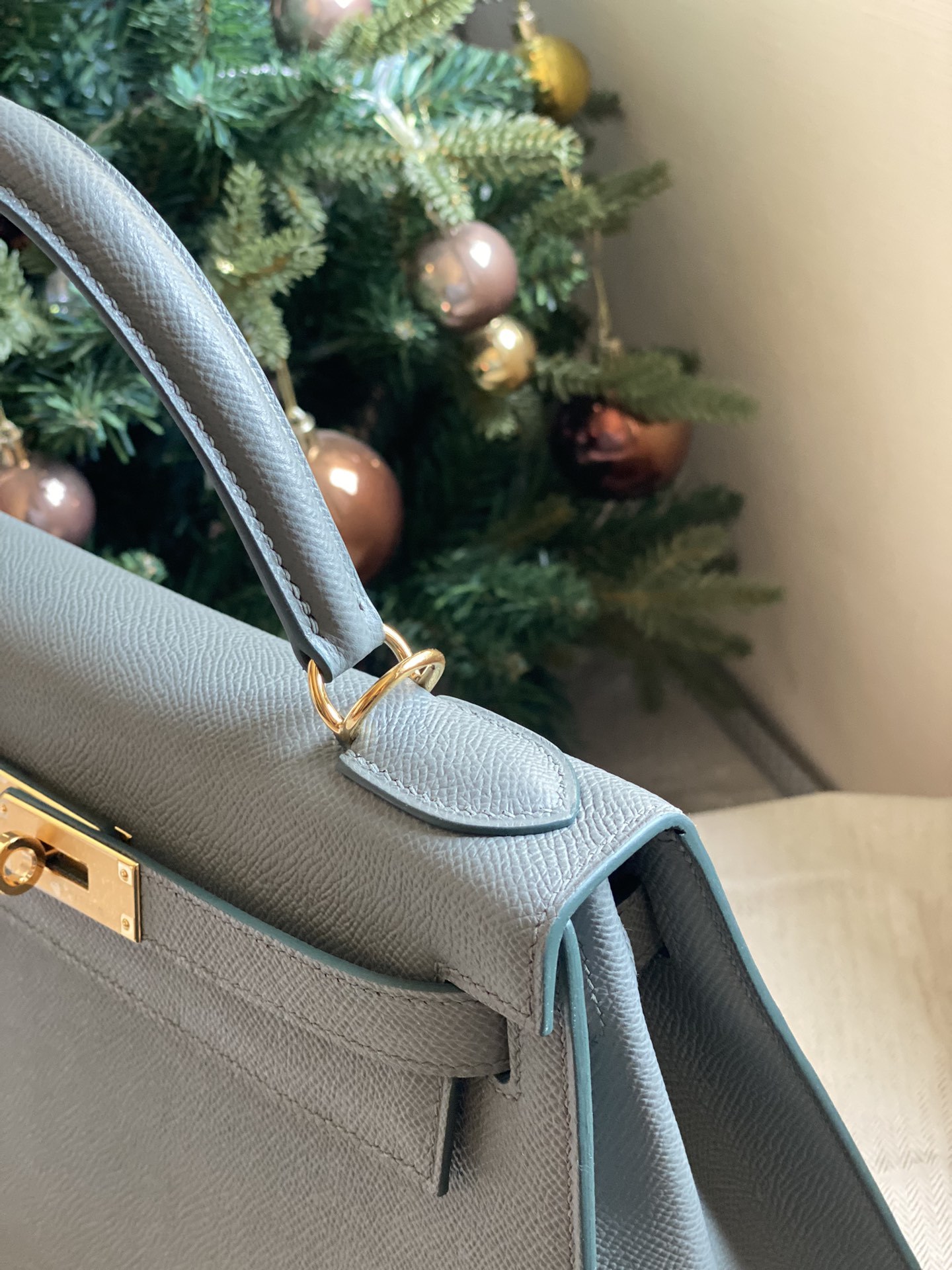 This is a replica ###Hermès Kelly Sellier 28 Vert Amande Epsom Leather Gold Hardware. ###