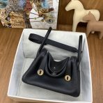This is a replica ###Hermès Lindy 26 Noir Clemence Palladium Hardware. ###