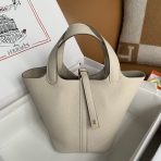 This is a replica ###Hermès Picotin Lock 18 Craie Clemence Gold Hardware. ###