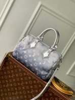 This is a replica LOUIS VUITTON M11848 Speedy Bandoulière 25. ,9.8 x 7.5 x 5.9 inches ,Frost,Monogram Nylon,Leather trim,Polyester lining,Silver-toned hardware,Zip closure,1 inside flat pocket,1 leather flower charm,Fits: Smartphone, keys, Zippy wallet and earphones,Strap:Removable, adjustable,Strap drop:18.3 inches,Strap drop max:21.7 inches,Handle:Double