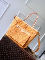 This is a replica LOUIS VUITTON M11947 Neverfull Bandoulière Inside Out MM. ,12.2 x 11 x 5.5 inches ,Monogram Coated Canvas/Jaune Safran Textile,Coated canvas and textile,Natural cowhide-leather trim,Gold-toned hardware,Hook closure,Flat printed zipped interior pocket,2 side laces,2 side hooks,Fits: 13-inch laptop, Smartphone, keys, Zippy wallet and earphones,Strap:Removable, not adjustable,Strap drop:16.5 inches,Handle:Double