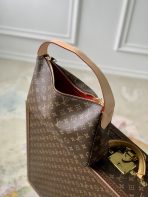 This is a replica LOUIS VUITTON M11952 Slouchy PM. ,13 x 8.7 x 3.5 inches ,Monogram,Coated canvas,Natural cowhide-leather trim,Textile lining,Gold-toned hardware,Double zip closure,1 zipped pocket,Padlock name tag,Fits: 9-inch tablet, Sarah long wallet, 6.7-inches smartphone, tissues, earphones, keys, lipstick, sunglasses,Weight: 0.6 kg,Handle: non-adjustable,Handle Drop: 11 cm,Handle Drop Max: 25 cm,Handle:Single