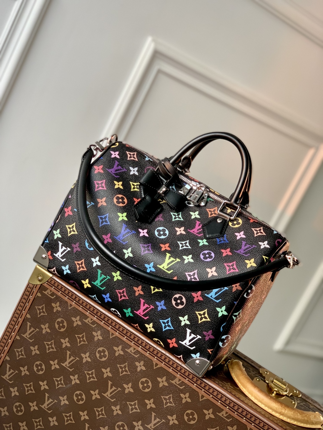 This is a replica LOUIS VUITTON M13257 ,LV x TM Speedy Soft 30,11.8 x 8.3 x 6.7 inches,(Length x Height x Width),Multicolored,Monogram coated canvas,Calf-leather trim,Textile lining,Silver-toned hardware,Double zipper closure,Inside pocket,Keybell,Padlock,Fits: smartphone, keys, earphones, Zippy wallet,Strap:Removable, not adjustable,Strap drop:9.4 inches,Handle:Double