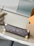 This is a replica LOUIS VUITTON M14526 Trunkie Bag. ,27 x 16 x 8 cm ,Coated canvas,Cowhide leather trim,Microfibre lining,Gold-colour hardware,Flap closure with S-lock clasp,Zipped inside pocket,Fits 6.7-inch smartphone, Sarah Long Wallet, notebook, sunglasses, keys,Chain: Non-removable,Chain Drop: 28.0 cm
