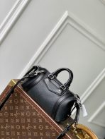This is a replica LOUIS VUITTON M14623 Nano LV Biker Bag. ,23 x 10 x 10 cm ,Black,Lambskin,Cowhide leather trim,Textile lining,Silver-colour hardware,Zip closure,Leather plastron,Side sliding straps,Fits 6.7-inch smartphone, Romy Card Holder, lipstick,Strap: Removable, adjustable,Strap Drop: 30.0 cm,Strap Drop Max: 45.0 cm,Handle: Single x2