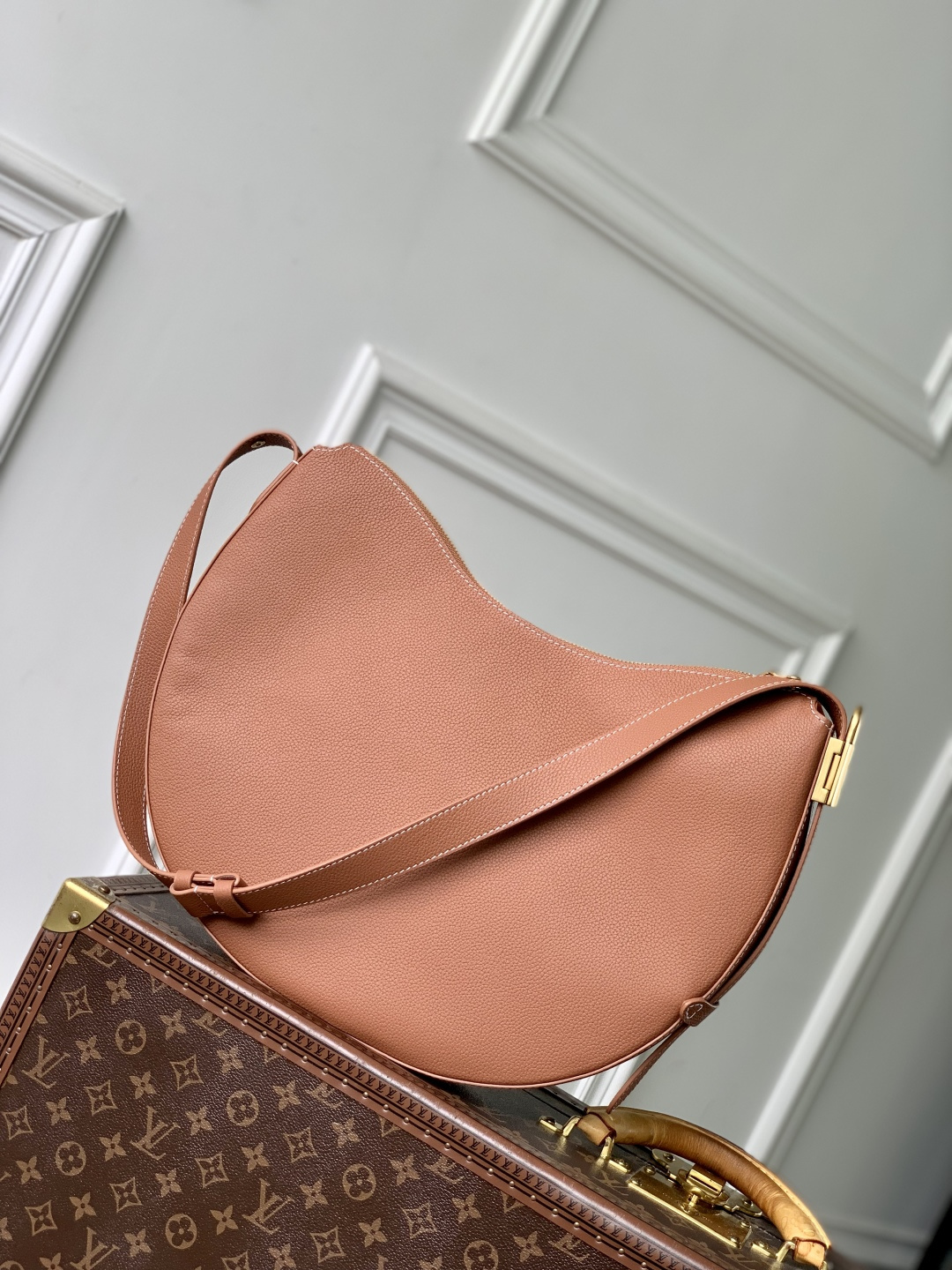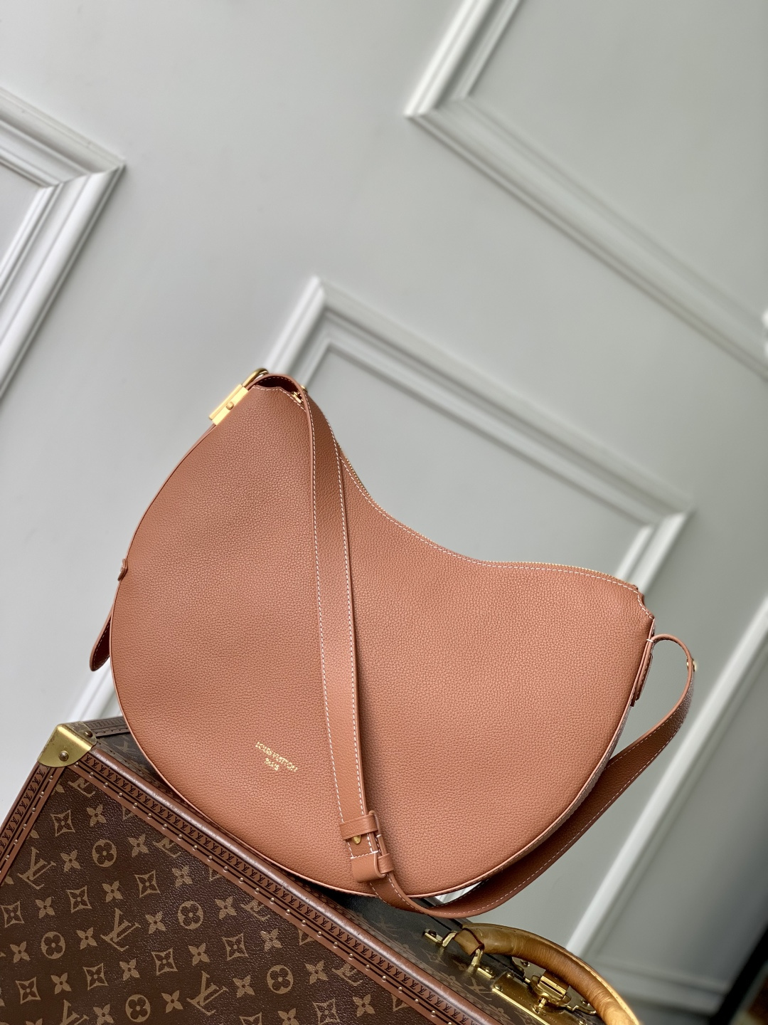 This is a replica LOUIS VUITTON M14642 Low Key Cookie MM Bag. ,32 x 26 x 5 cm ,Cognac Brown,Calf leather,Calf leather trim,Calf leather lining,Aged gold-colour hardware,Fully zipped closure,1 removable Monogram pouch,Fits 11-inch tablet, smartphone, Clémence long wallet, earphones, keys, sunglasses, lipstick, other belongings,Strap: Non-removable, adjustable,Strap Drop: 34.0 cm,Strap Drop Max: 58.0 cm,Handle: Single