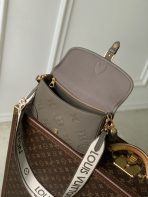 This is a replica LOUIS VUITTON M15049 Diane Bag. ,24 x 15 x 9 cm ,Smoke,Embossed grained cowhide leather,Cowhide leather trim,Microfibre lining,Gold-colour hardware,Flap with magnet closure,1 inside flat zipped pocket,Fits smartphone, wallet, keys, lipstick,Strap: Removable, adjustable,Strap Drop: 40.0 cm,Strap Drop Max: 60.0 cm,Handle: Single, removable