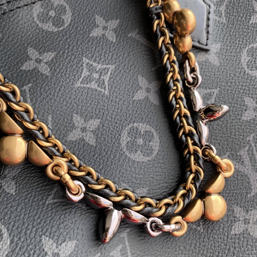This is a replica LOUIS VUITTON M15102 Speedy Soft 30. ,11.8 x 8.3 x 6.7 inches,(Length x Height x Width),Monogram Eclipse/Black,Coated canvas,Cowhide-leather trim,Grained cowhide-leather lining,Silver-toned and gold-toned hardware,Double zipper closure,1 zipped interior pocket,1 removable double chain,1 keybell,Fits: 9-inch tablet, 6.7-inch smartphone, earphones, Zippy wallet, keys, sunglasses, lipstick,Strap:Removable, not adjustable,Strap drop:9.4 inches,Handle:Double