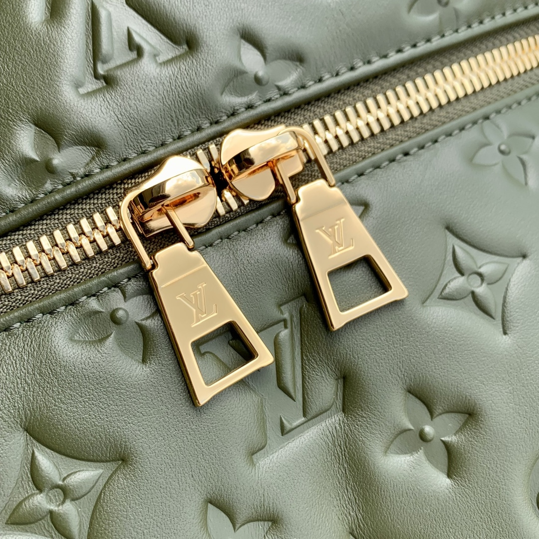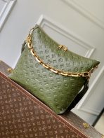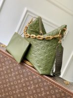 This is a replica LOUIS VUITTON M15228 Coussin Hobo MM Bag. ,38 x 33 x 10 cm ,Dark Khaki ,Calf leather,Cowhide leather trim,Cowhide leather lining,Gold-colour hardware,Zip closure,1 removable zipped pocket,Fits 13-inch laptop, smartphone, earphones, Zippy Wallet, sunglasses, keys, lipstick,Strap: Removable, adjustable,Strap Drop: 30.0 cm,Strap Drop Max: 50.0 cm,Chain: Removable,Chain Drop: 24.0 cm