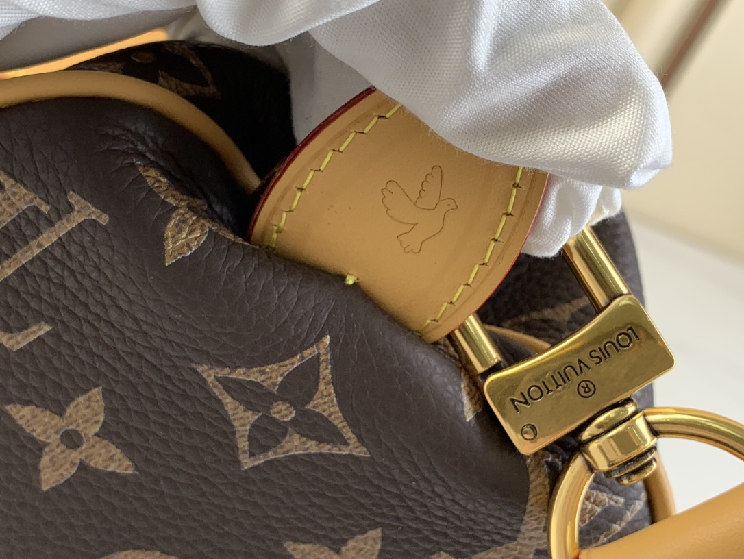 This is a replica LOUIS VUITTON M24443 Speedy P9 Bandoulière 25. ,9.8 x 7.5 x 5.9 inches ,Monogram,Soft calfskin,Natural cowhide-leather trim,Lambskin lining,Gold-color hardware,Main compartment with lock,Inside zipped pocket,Removable pouch in leather,Name tag,Key bell,Strap:Removable, adjustable,Strap drop:21.7 inches,Strap drop max:24.8 inches,Handle:Double