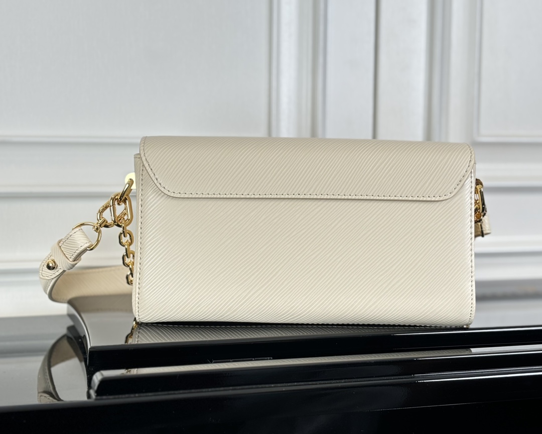 This is a replica LOUIS VUITTON M24550 Twist West.,9.3 x 4.7 x 2.8 inches ,Quartz White,Epi grained cowhide leather,Epi grained cowhide-leather trim,Smooth cowhide-leather lining,Gold-color hardware,Strap:Removable, not adjustable,Strap drop:7.7 inches,Chain:Removable,Chain drop:7.7 inches