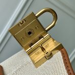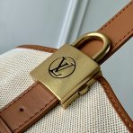 This is a replica LOUIS VUITTON M25468 Low Key Hobo PM. ,24 x 28 x 16 cm ,Ecru White/Cognac Brown,Cotton and cowhide leather,Cowhide leather trim,Striped cotton lining,Aged gold-colour hardware,1 hook closure,1 interior flat pocket,1 removable Monogram zipped pouch,Fits smartphone, Lou Wallet, keys, lipstick,Strap: Non-removable, adjustable,Strap Drop: 27.0 cm,Strap Drop Max: 45.5 cm