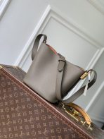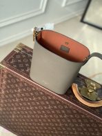 This is a replica LOUIS VUITTON M25544 All In BB.,The Low Key Collection introduces an iconic style to its lineup with this bucket-shaped All In BB bag. It is crafted from grained calfskin adorned with a signature gold-toned padlock, as well as a decorative name tag and removable Monogram pouch that slots neatly inside. Designed to be worn casually as an open bucket bag, the versatile model can also be folded flat to create a pyramidal profile.,