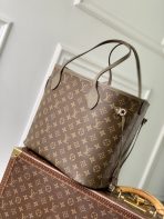 This is a replica LOUIS VUITTON M25664 Neverfull Inside Out MM Bag. ,31 x 28 x 14 cm ,Monogram/Smoke,Coated canvas,Cowhide leather trim,Grained cowhide leather lining,Gold-colour hardware,Removable zipped pouch,2 side laces,2 side hooks,Fits 13-inch laptop, smartphone, earphones, Zippy Wallet, keys, sunglasses, lipstick,Handle: Single x2