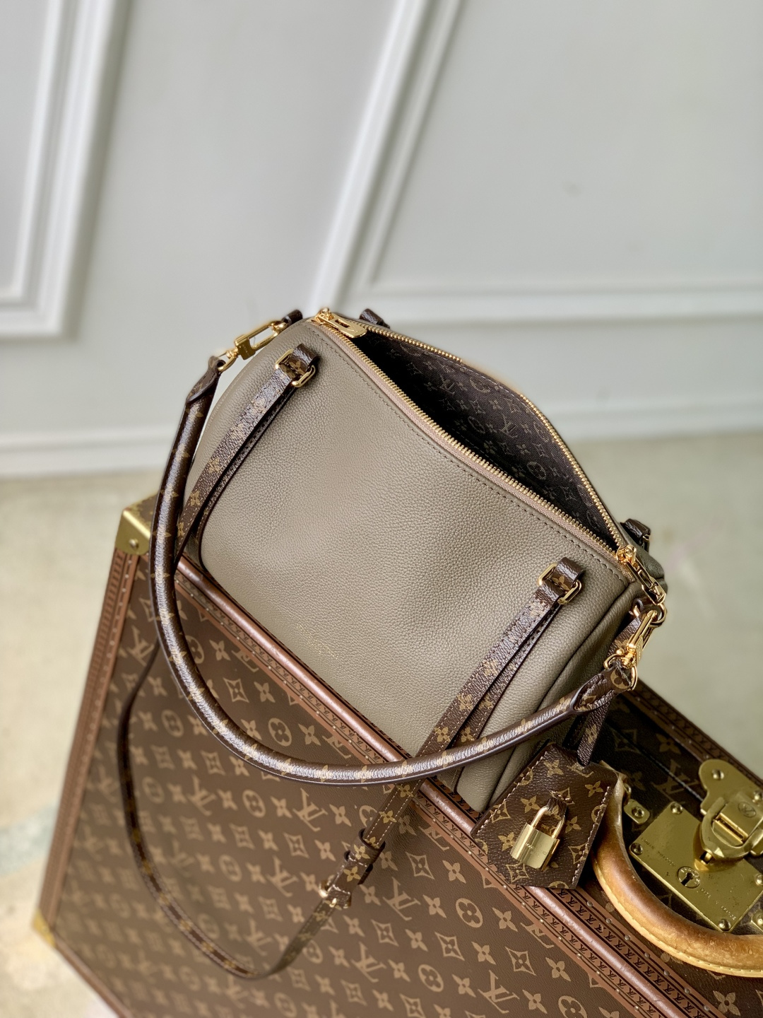 This is a replica LOUIS VUITTON M26360 Express PM Bag. ,26 x 17 x 13.5 cm ,Smoke Grey,Calfskin,Coated canvas trim,Cotton lining,Gold-colour hardware,Double zip closure,Removable key bell with removable padlock (can be placed on the zip pulls),Strap: Removable, adjustable,Strap Drop: 41.0 cm,Strap Drop Max: 47.0 cm,Handle: Single x2