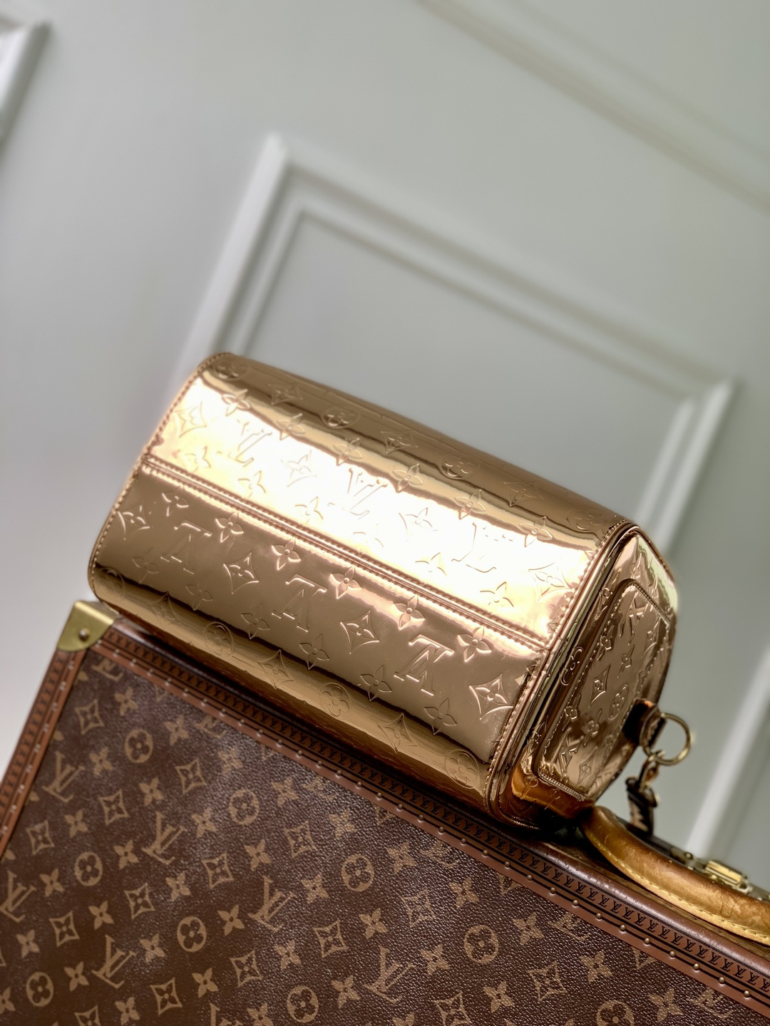 This is a replica LOUIS VUITTON M26497 Speedy Bandoulière 25. ,27 x 19 x 15 cm ,Copper,Coated canvas,Coated canvas trim,Textile lining (cotton and polyester),Rose gold-colour hardware,Zip closure,1 inside flat pocket,Fits 6.7-inch smartphone, earphones, Sarah wallet, sunglasses, keys, lipstick,Strap: Removable, non-adjustable,Strap Drop: 52.0 cm,Handle: Single x2