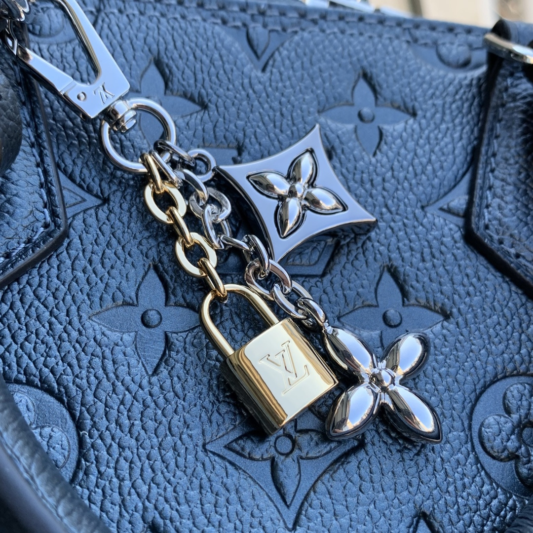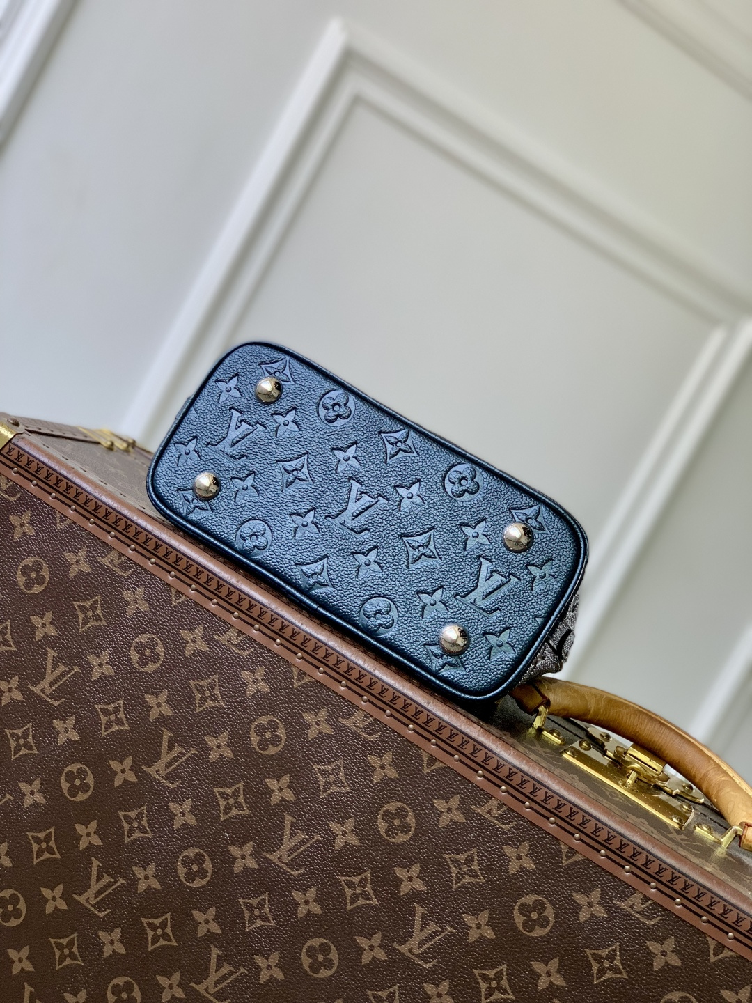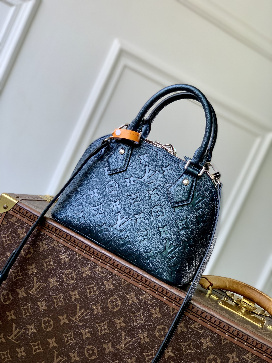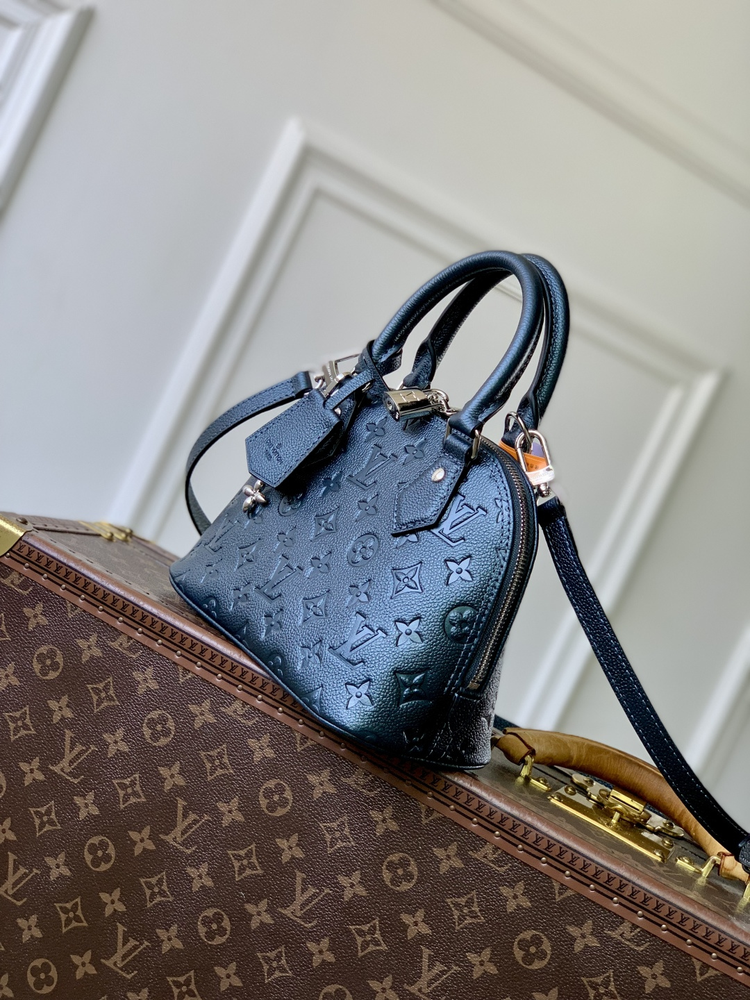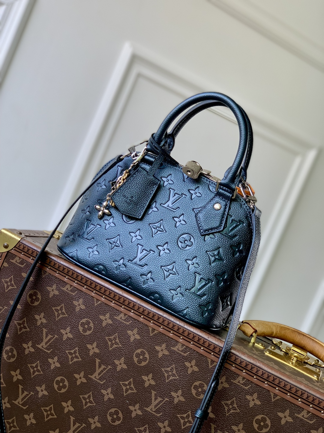 This is a replica LOUIS VUITTON M26686 Alma BB. ,23.5 x 17.5 x 11.5 cm ,Shimmery Ink,Cowhide leather,Cowhide leather trim,Microfibre lining,Silver-colour hardware,1 removable charm in gold-colour, ruthenium and silver-colour finish,1 zip closure,1 key bell,1 flat inside pocket,4 protective metal base feet,Fits smartphone, earphones, compact wallet, sunglasses,Strap: Removable, non-adjustable,Strap Drop: 56.0 cm,Handle: Single x2,Fits 6.7-inch smartphone, earphones, sunglasses, keys, lipstick,Strap: Removable, non-adjustable,Strap Drop: 52.0 cm,Handle: Single x2