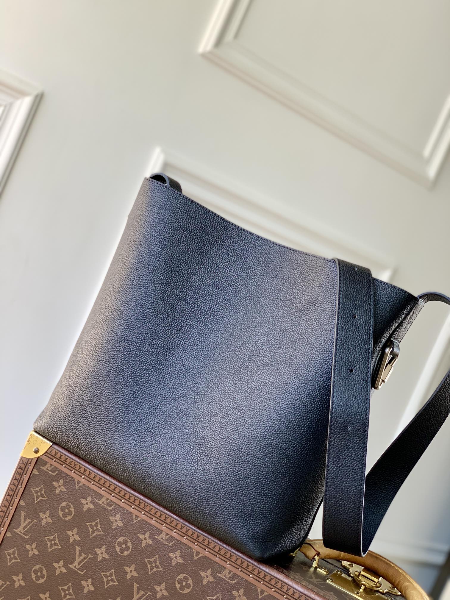 This is a replica LOUIS VUITTON M27022 Verso Hobo Bag. ,30 x 33 x 15.5 cm ,Black,LV Touch cowhide leather,Cowhide leather trim,Suede lining,Silver-colour hardware,Front pocket,Carabiner clip,Inside removable zipped pouch,Inside pocket,Strap: Non-removable, adjustable,Strap Drop: 39.5 cm,Strap Drop Max: 53.0 cm