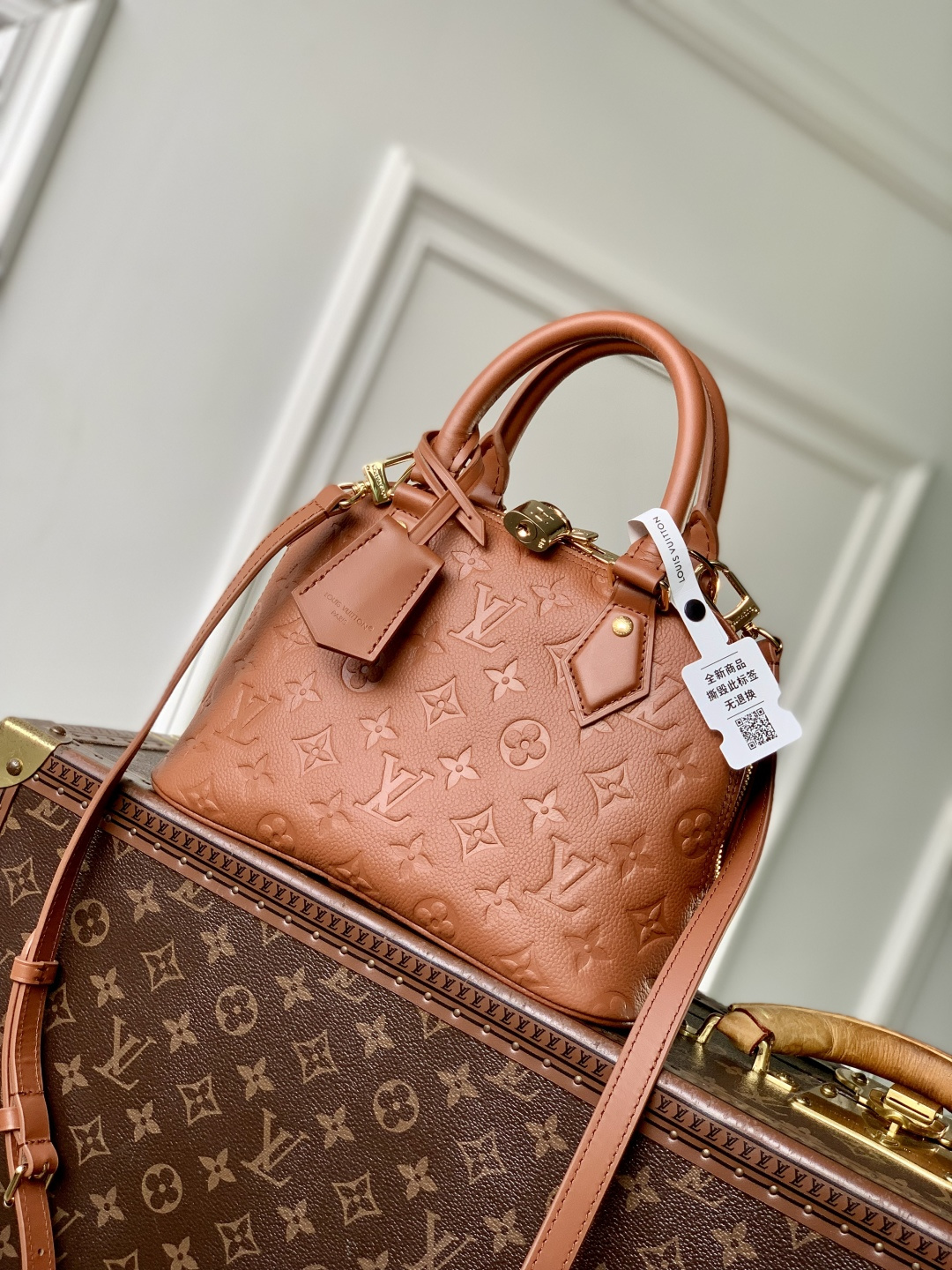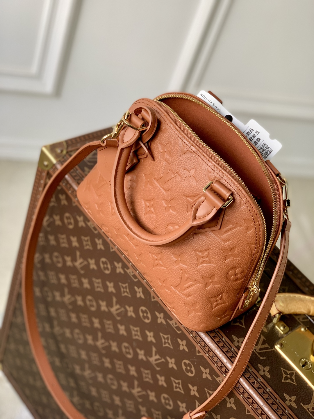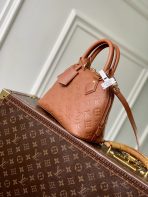 This is a replica LOUIS VUITTON M28661 Alma BB. ,23.5 x 17.5 x 11.5 cm ,Tan,Cowhide leather,Cowhide leather trim,Microfibre lining,Gold-colour hardware,Zip closure with padlock and keys,1 key bell,1 flat inside pocket,4 protective metal base feet,Fits smartphone, earphones, Compact Wallet, sunglasses,Strap: Removable, adjustable,Strap Drop: 50.0 cm,Strap Drop Max: 62.0 cm,Handle: Single x2