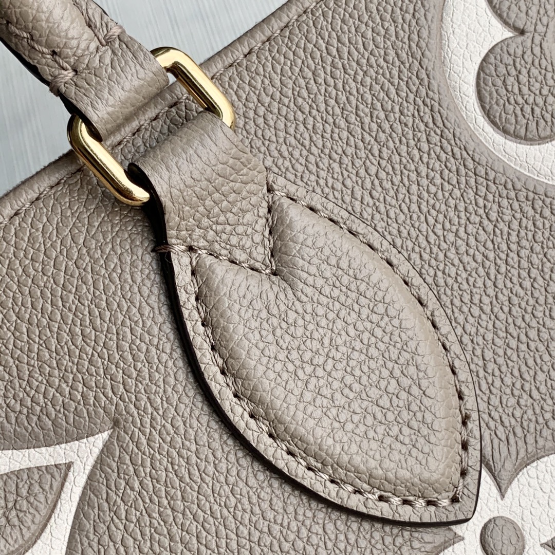 This is a replica LOUIS VUITTON M45494 OnTheGo MM. ,13.8 x 10.6 x 5.5 inches ,Tourterelle Beige/Cream,Embossed grained cowhide leather,Grained cowhide-leather trim,Microfiber lining,Gold-color hardware,Inside flat zipped pocket,Inside double pocket,2 long leather shoulder straps (drop: 24 cm),Fits: 13-inch laptop, smartphone, keys, Zippy Long Wallet, earphones,Handle:Double