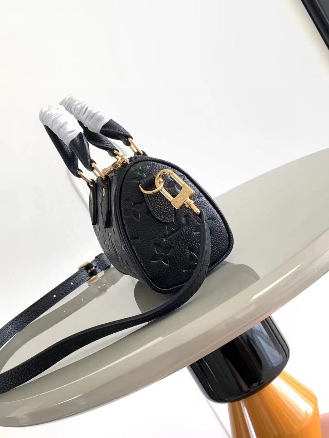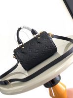 This is a replica LOUIS VUITTON M82450 ,Nano Speedy,6.3 x 3.9 x 3 inches,(Length x Height x Width),Black,Monogram Empreinte embossed supple grained cowhide leather,Microfiber lining,Gold-color hardware,Zip closure,Fits: 6.7-inches smartphone, Rosalie Coin Purse, sunglasses, earphones, keys, lipstick,Strap:Removable, adjustable,Strap drop:17.9 inches,Strap drop max:21.3 inches,Handle:Double