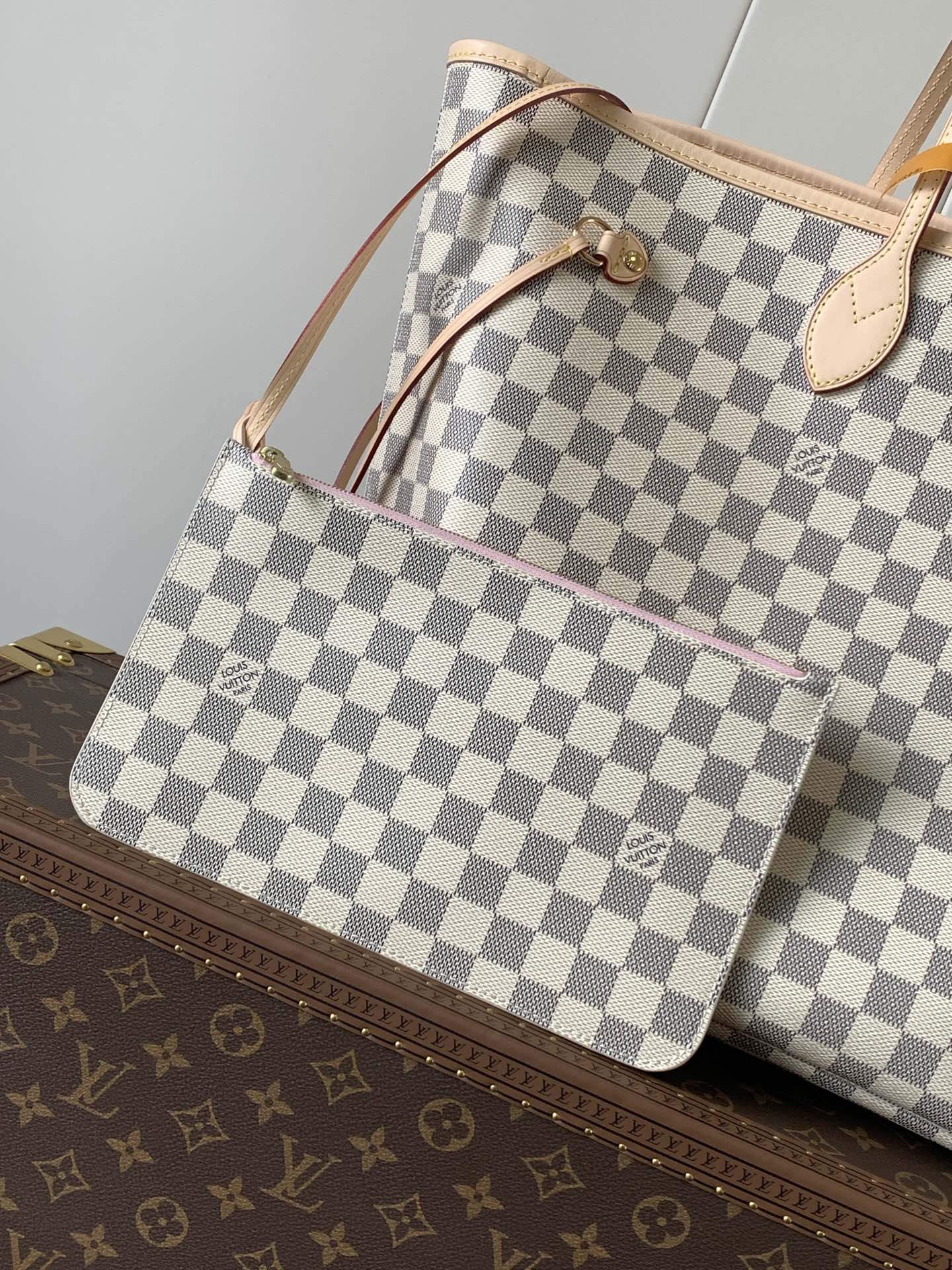 This is a replica LOUIS VUITTON N40601 ,15.4 x 12.6 x 7.5 inches ,Rose Ballerine Pink,Damier Azur coated canvas,Natural cowhide-leather trim,Striped textile lining,Gold-color hardware,4 side laces,Hook closure,Flat, textile-lined zipped inside pocket,Removable zipped pouch,D-ring,Fits: 15-inch laptop, 13-inch tablet, smartphone, Zippy Long Wallet, book, sunglasses, lipstick, keys, tissues,Handle:Double