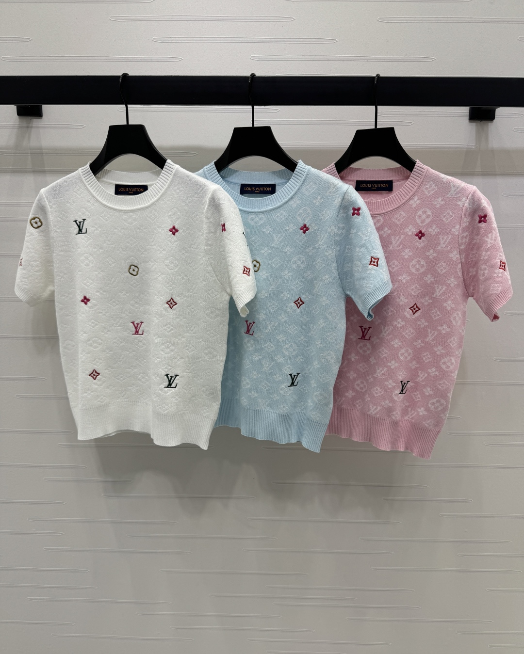 Lv colorful monogram embroidered knit short sleeve A706B270C