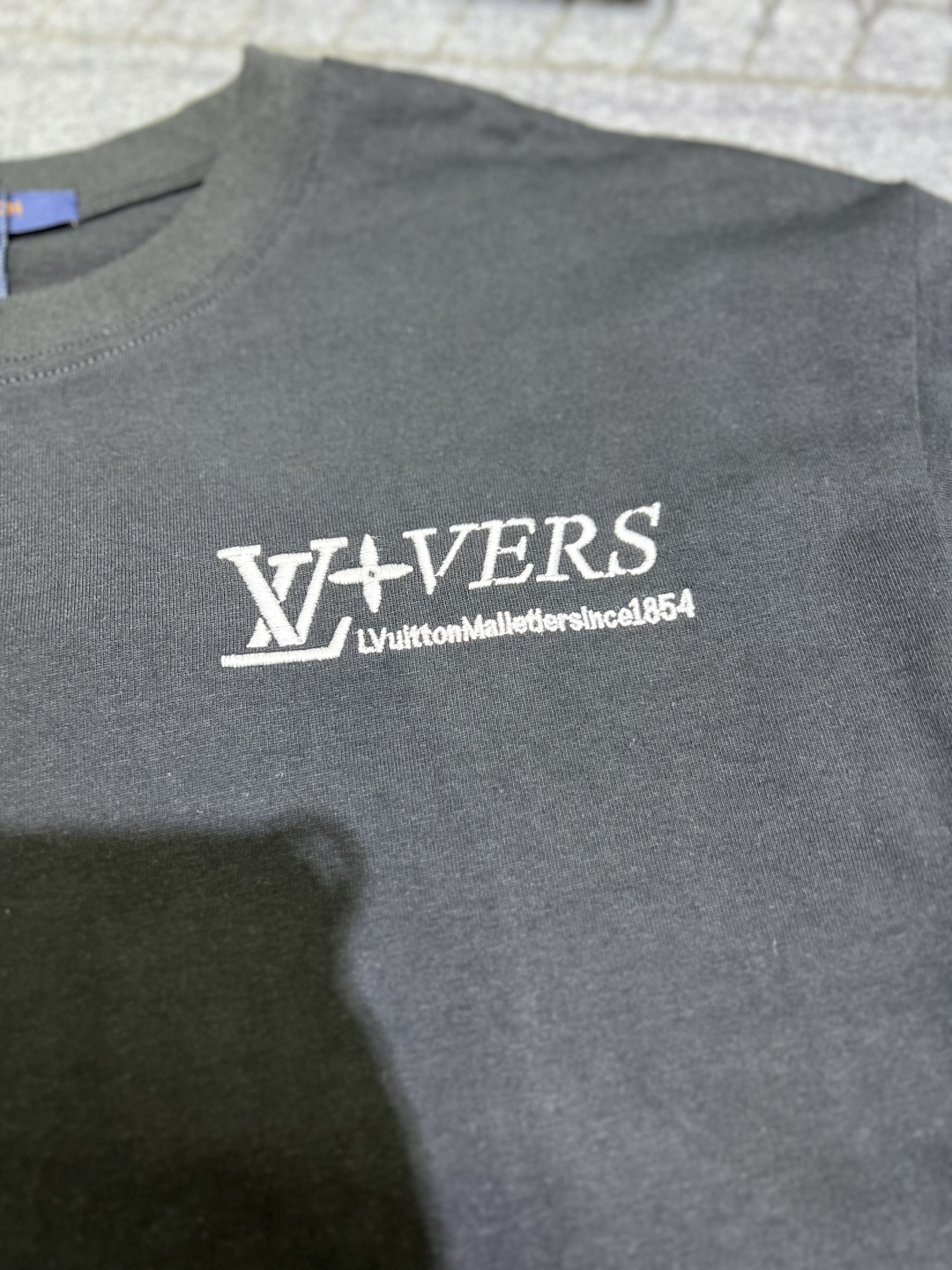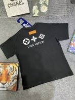 Lv monogram flocked print back logo cotton t-shirt