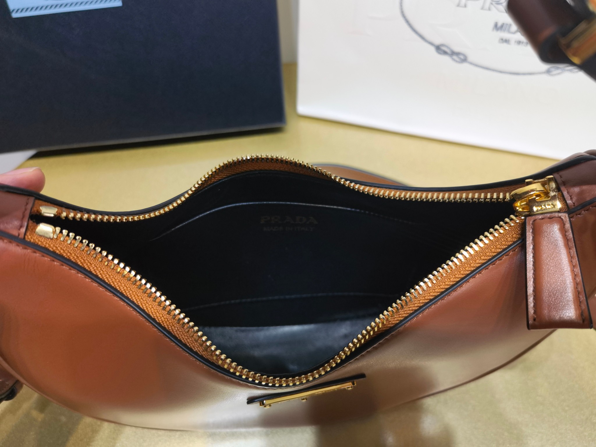 This is a replica Prada 1BC194 Arqué leather small shoulder bag. ,Detachable, adjustable leather handle,Detachable, adjustable leather shoulder strap. Max. length: 93 cm – Min. length: 83 cm – Max. drop length: 60 cm – Min. drop length: 55 cm,Metal hardware,Enameled metal triangle logo on the front,Zipper closure,Nappa leather interior with patch pocket,Imported,Height: 18.5cm,Width: 22.5cm,Length: 6cm