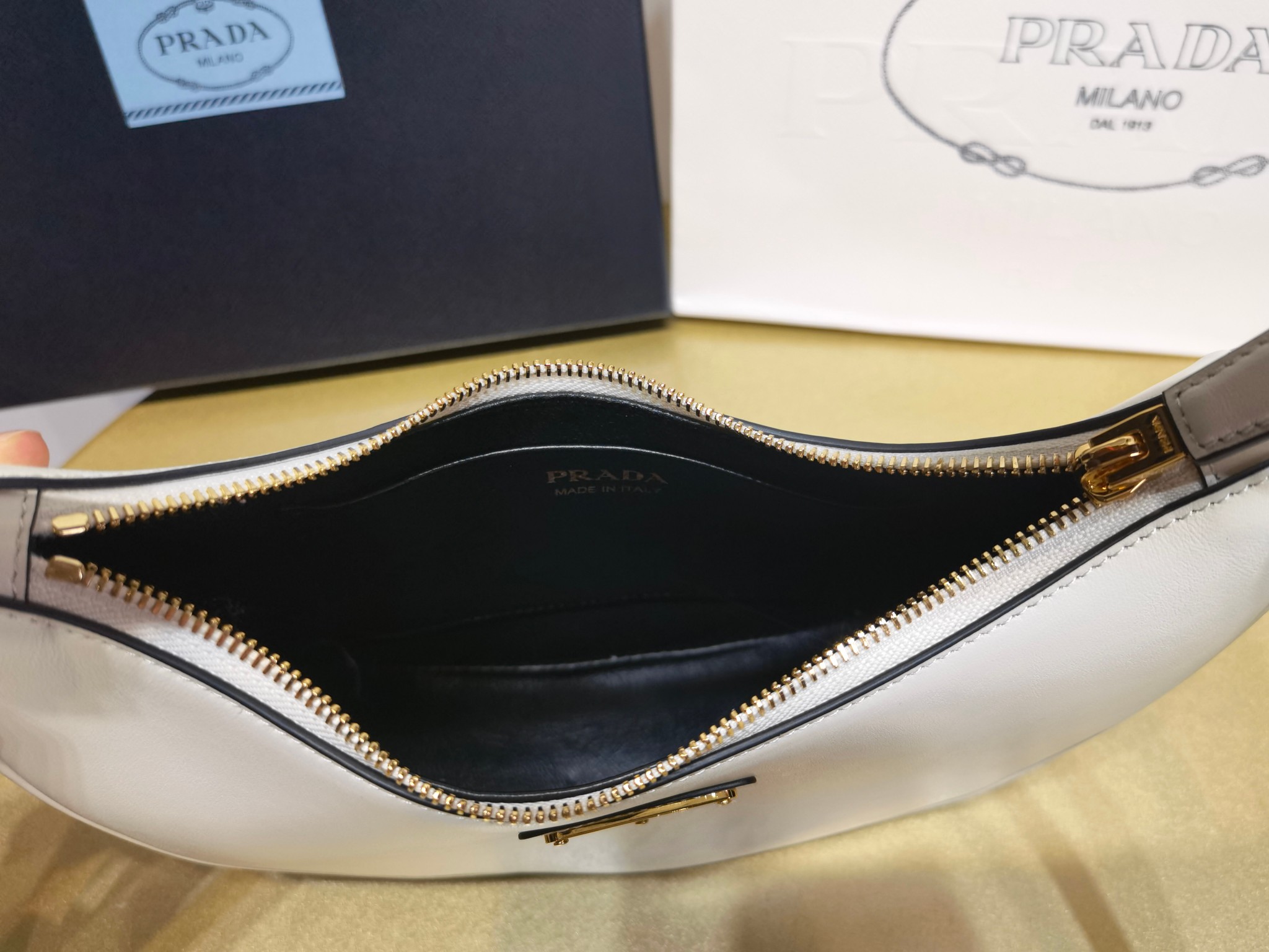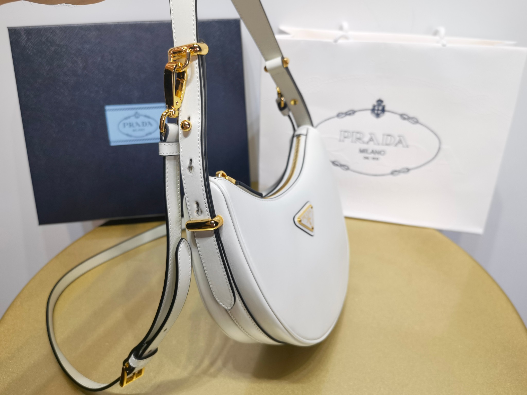This is a replica Prada 1BC194 Arqué leather small shoulder bag. ,Detachable, adjustable leather handle,Detachable, adjustable leather shoulder strap. Max. length: 93 cm – Min. length: 83 cm – Max. drop length: 60 cm – Min. drop length: 55 cm,Metal hardware,Enameled metal triangle logo on the front,Zipper closure,Nappa leather interior with patch pocket,Height: 18.5cm,Width: 22.5cm,Length: 6cm