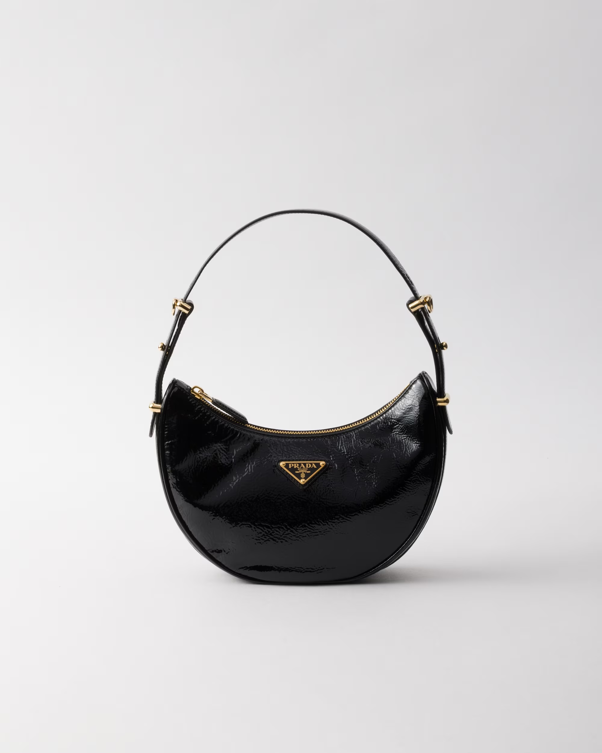 This is a replica Prada 1BC194 Arqué leather small shoulder bag. ,Detachable, adjustable suede handle,Detachable, adjustable suede shoulder strap Maximum length 93 cm – Minimum length 83 cm – Maximum drop 60 cm- Minimum drop 55 cm,Metal hardware,Enameled metal triangle logo on the front,Zipper closure,Nappa leather lining with patch pocket,