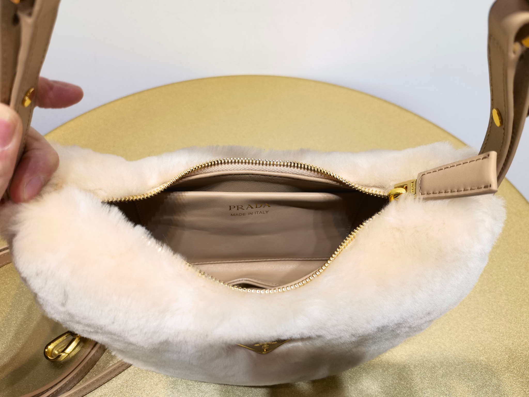 Prada 1BC194 Arqué small shearling and leather shoulder bag