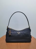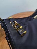 Prada Aimée 1BC232 Large Recycled Nylon and Leather Shoulder Bag with Padlock