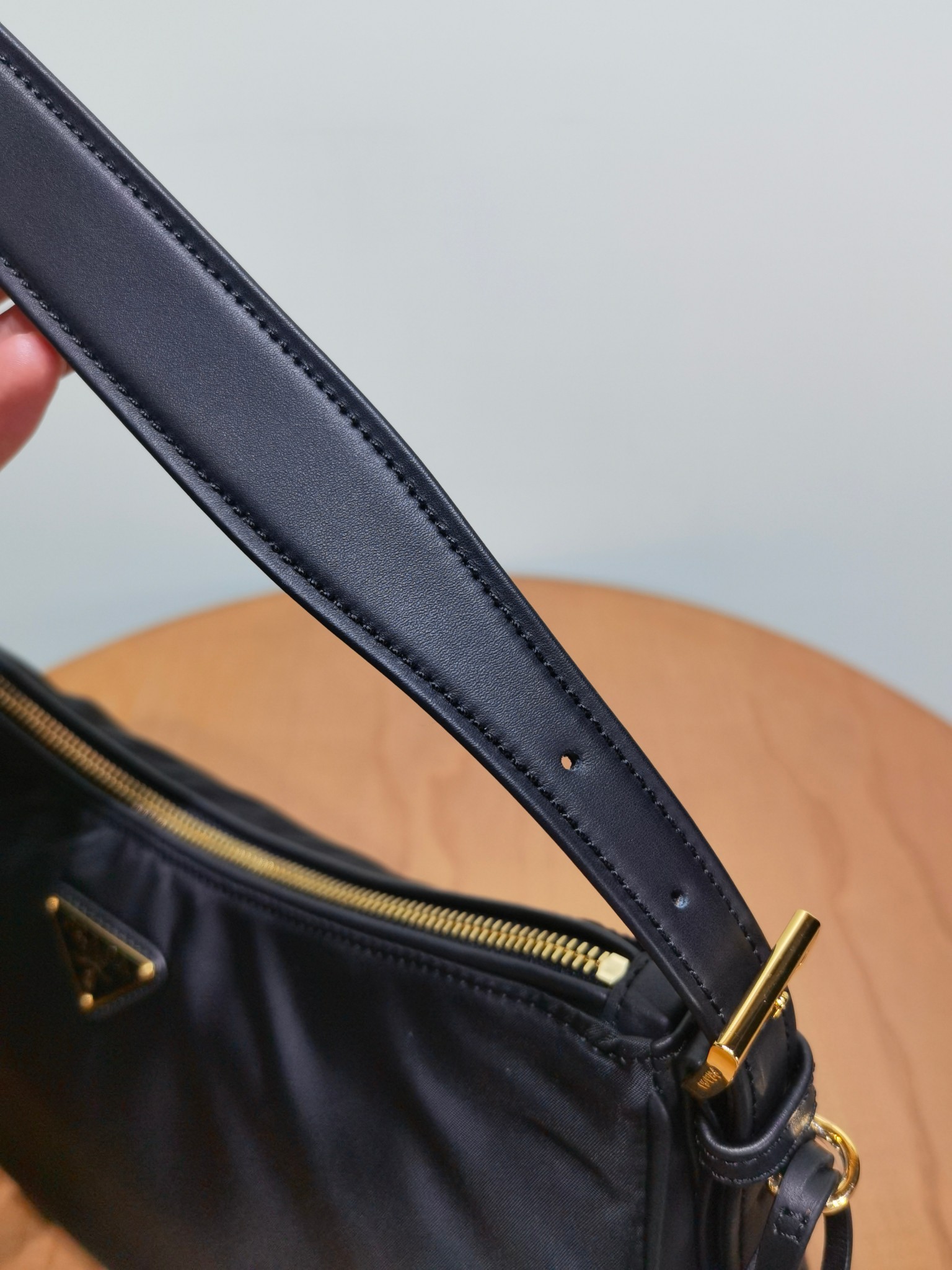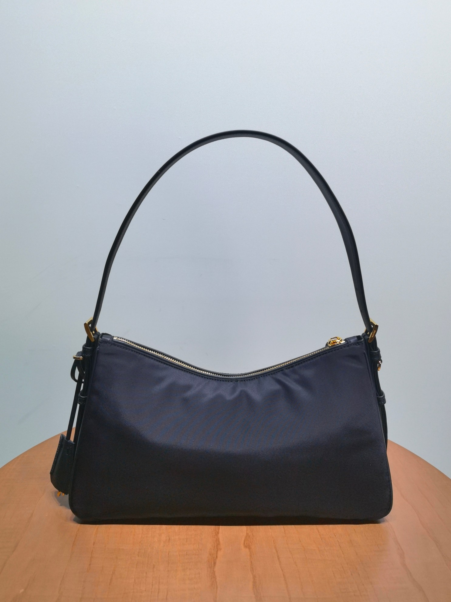 This is a replica Prada Aimée 1BC232 Large Recycled Nylon and Leather Shoulder Bag with Padlock. ,Adjustable leather handle,Detachable keychain,Metal hardware accessories,Enameled metal triangle logo on the front,Zipper and padlock closure,Logo-print recycled nylon lining with 2 interior pockets, 1 with zipper,