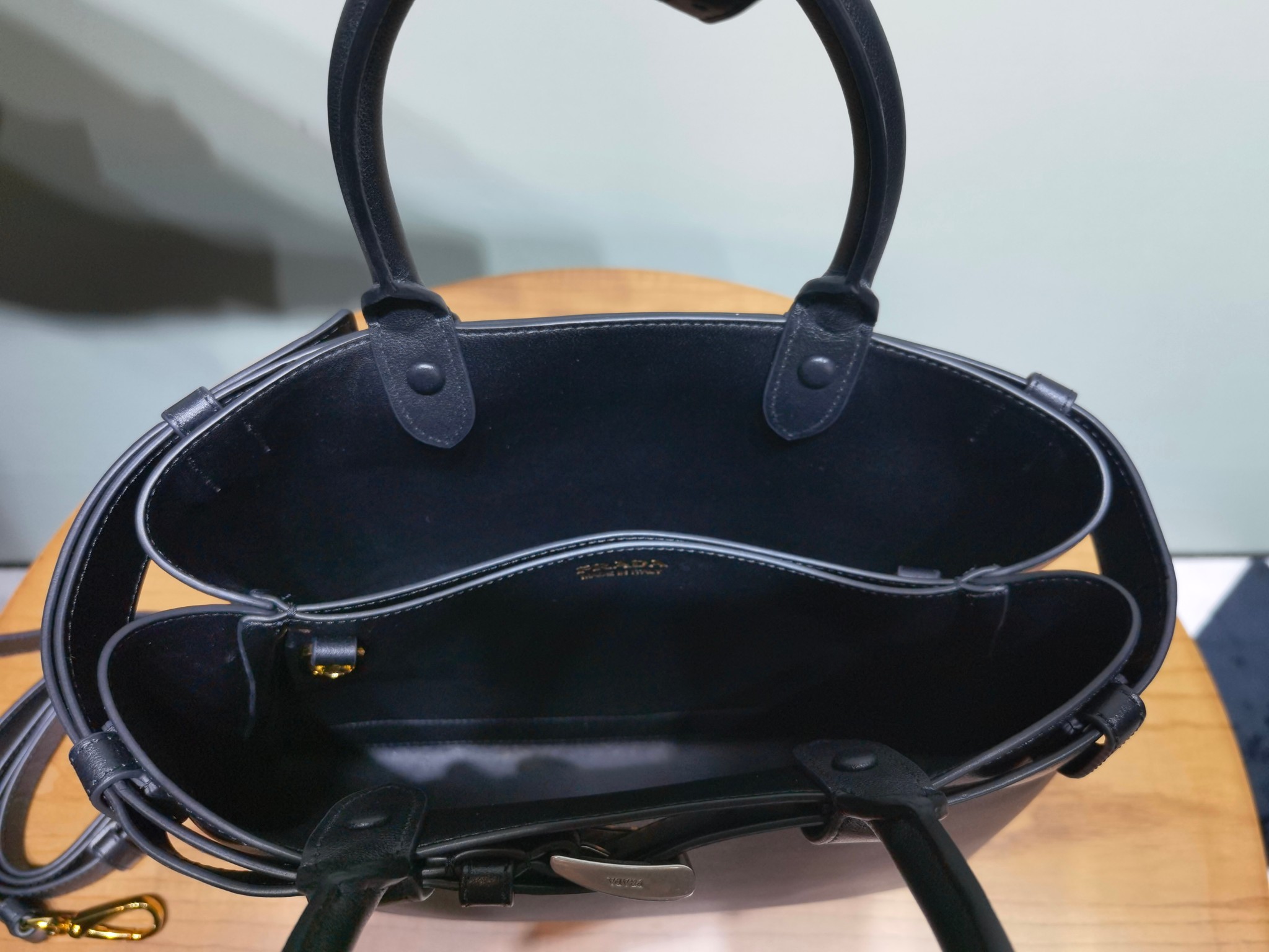 Prada Buckle 1BA434 Small Leather Drawstring Bag 1