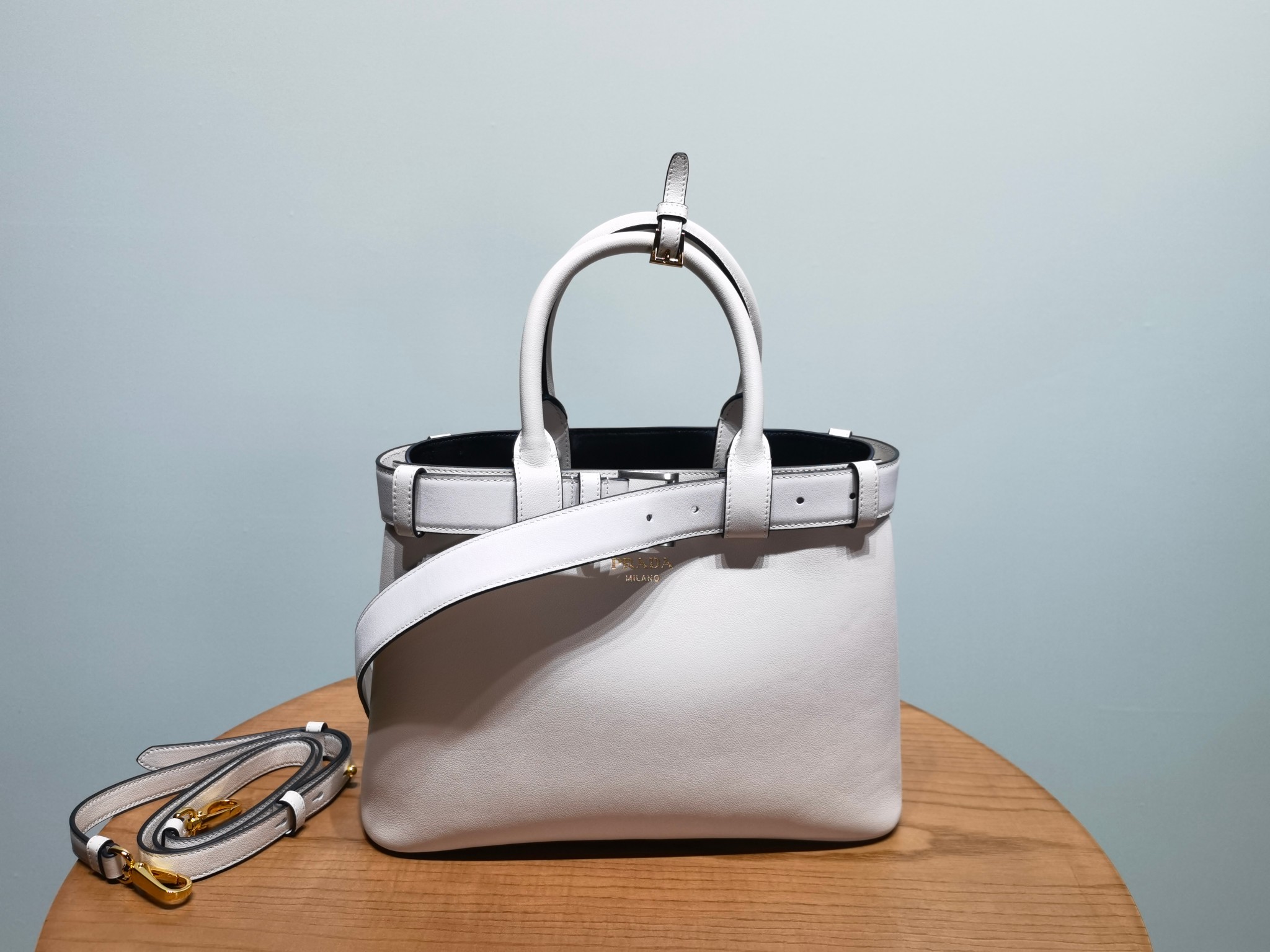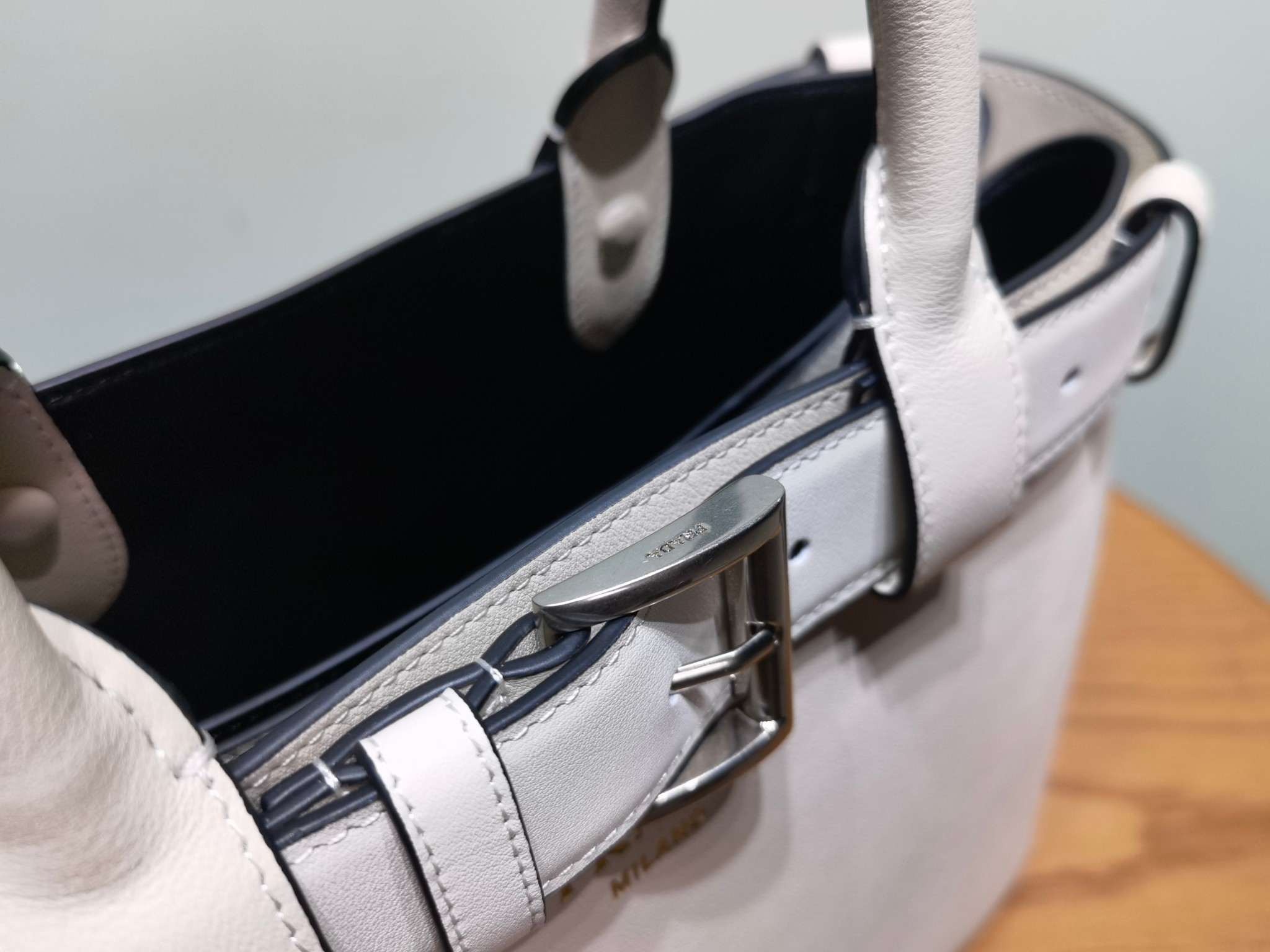 Prada Buckle 1BA434 Small Leather Drawstring Bag 2