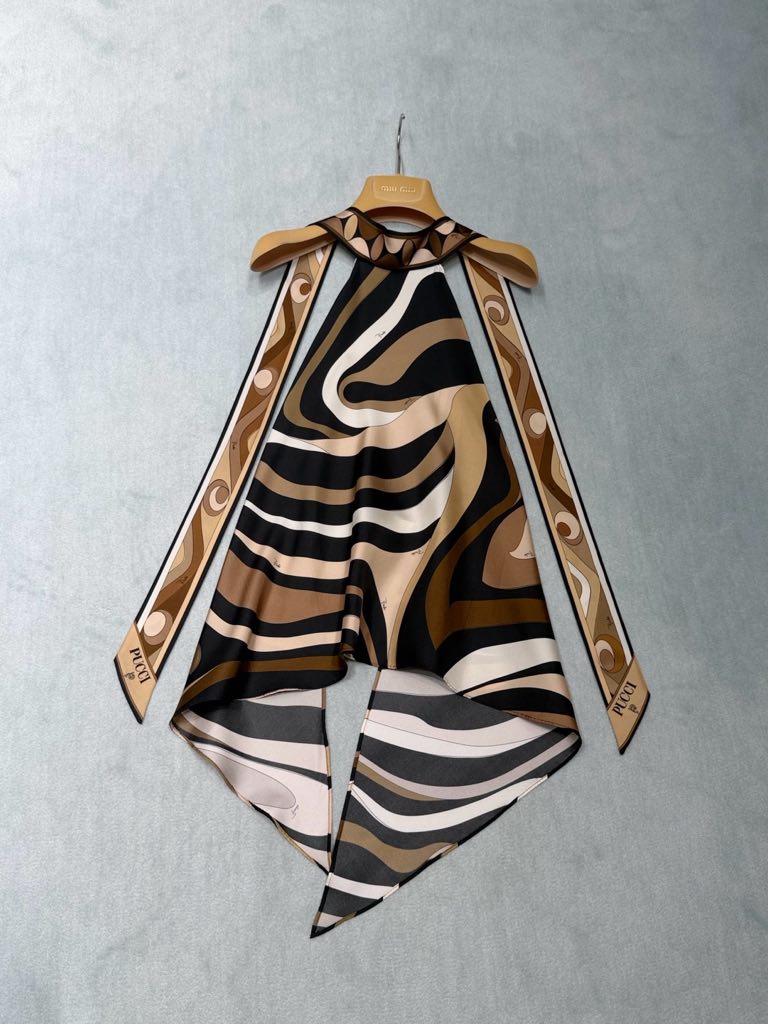 Be the first to review “PUCCI brown black swirl asymmetric hem blouse”