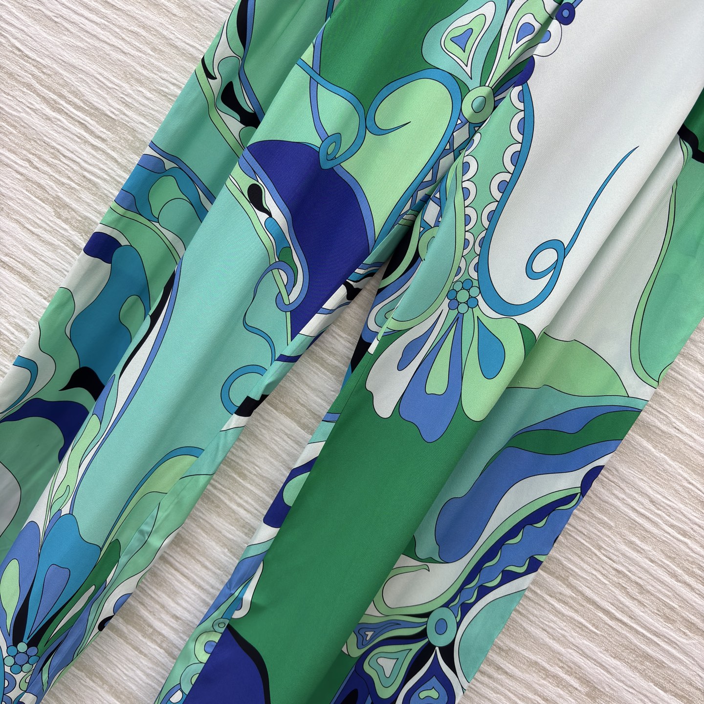 PUCCI 2026 SS floral print silk twill wide-leg pants