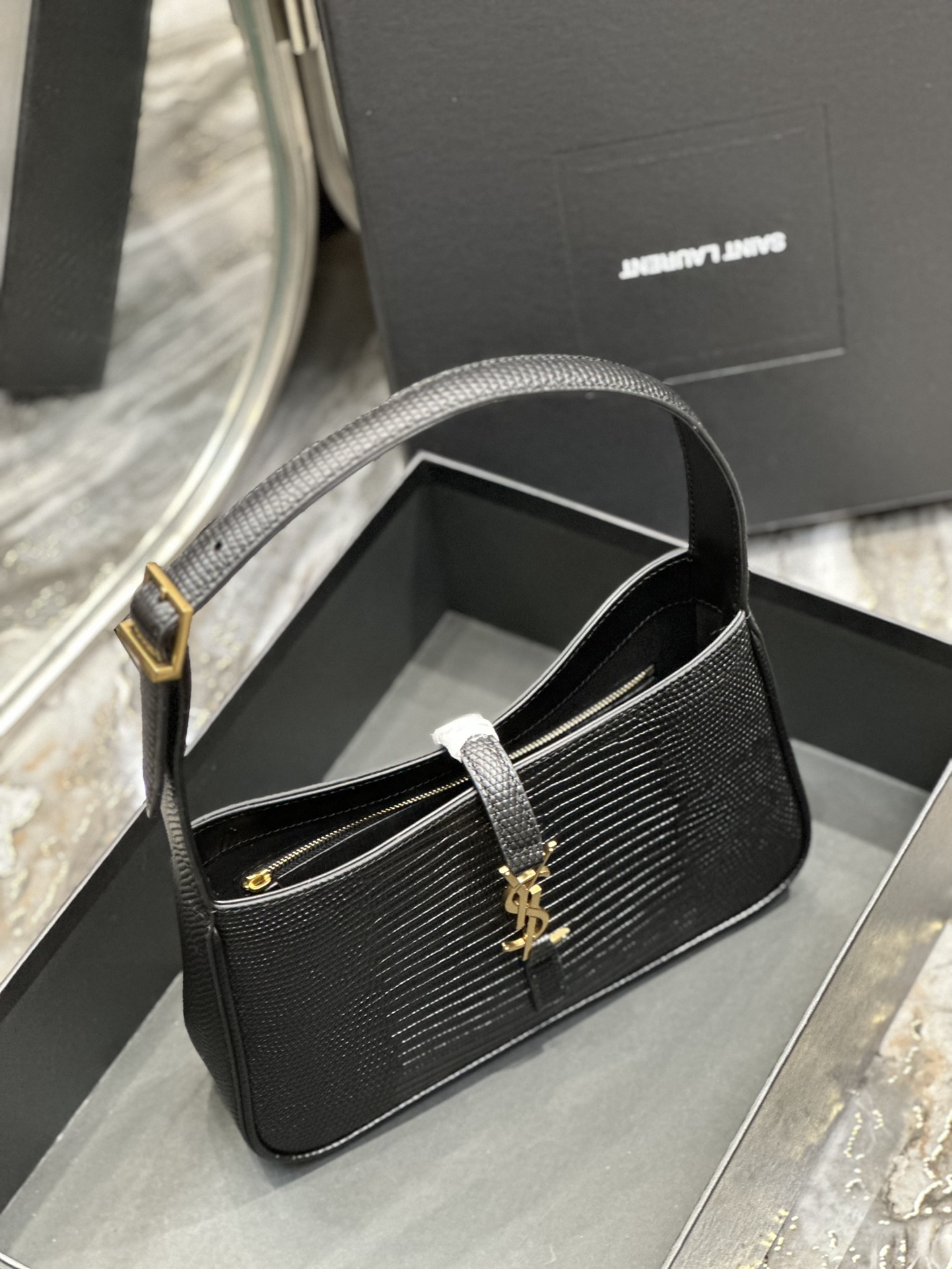 This is an replica SAINT LAURENT Le 5 À 7 in lizard-embossed shiny leather.,Hobo bag with an adjustable strap and CASSANDRE hook closure.,