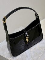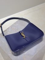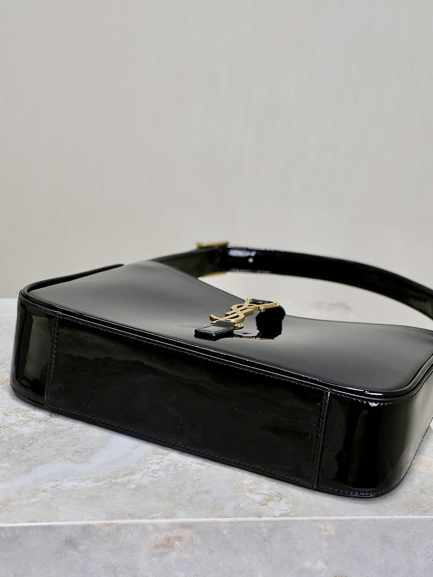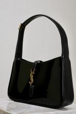 This is an replica SAINT LAURENT Le 5 À 7 in patent leather.,Hobo bag with an adjustable strap and CASSANDRE hook closure.,