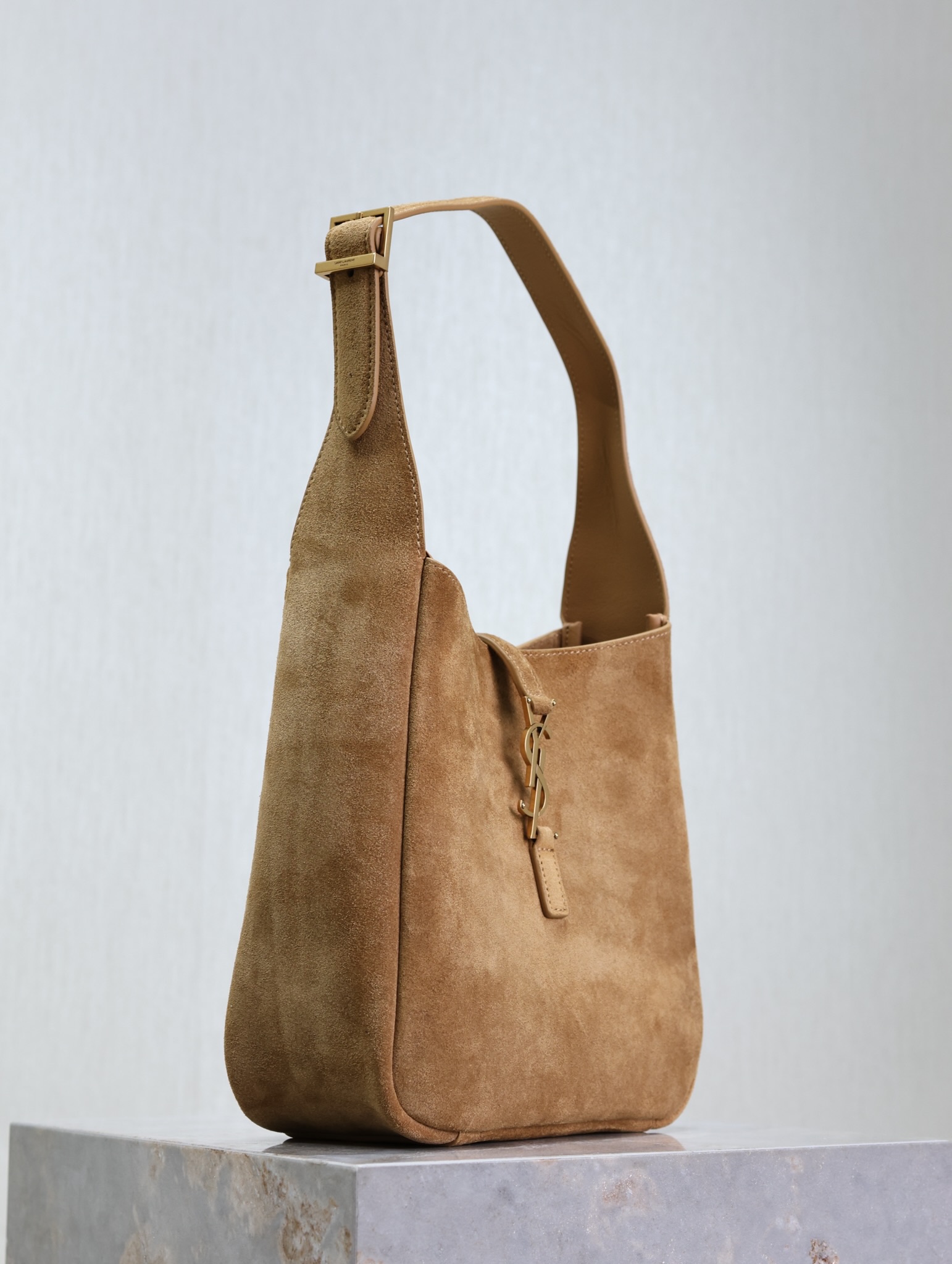 This is an replica SAINT LAURENT small version of the iconic 5 À 7 in suede leather.,