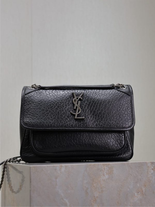 This is an replica SAINT LAURENT NIKI baby in vintage leather.,FLAP BAG IN VINTAGE CALF LEATHER, FEATURING CHEVRON QUILT OVERSTITCHING AND LEATHER-ENCASED CASSANDRE.,LIGHT, WITH TWO COMPARTMENTS AND A LARGE BACK SLOT POCKET.,FEATURES A SLIDING CHAIN STRAP THAT CAN BE WORN ON THE SHOULDER OR CROSSBODY.,